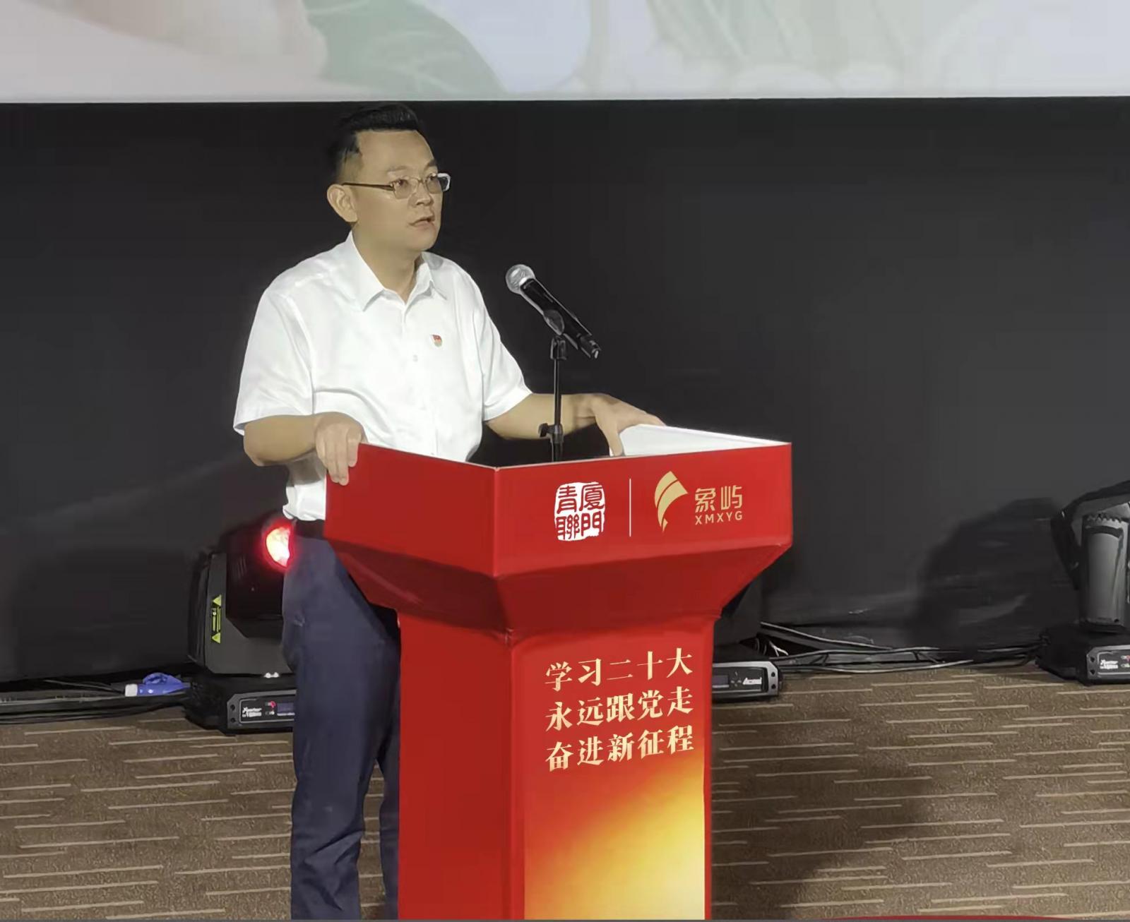 近日,由廈門市青年聯(lián)合會、象嶼集團主辦,廈門市國資團工委、市青年社會組織聯(lián)合黨支部、象嶼集團團委承辦的“學習二十大 永遠跟黨走 奮進新征程”各界青年學習黨的二十大精神分享會暨《讓這首歌作證》紅色觀影活動,在象嶼集團愛國主義影視廳舉行。