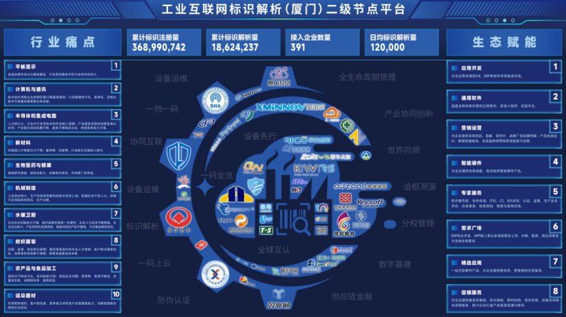 2022年8月,由象嶼集團(tuán)旗下廈門市物聯(lián)網(wǎng)產(chǎn)業(yè)研究院承接建設(shè)的國(guó)家工業(yè)互聯(lián)網(wǎng)標(biāo)識(shí)解析(廈門)綜合型二級(jí)節(jié)點(diǎn)正式投入運(yùn)營(yíng),為廈門乃至全國(guó)企業(yè)提供專業(yè)的標(biāo)識(shí)注冊(cè)、標(biāo)識(shí)查詢、標(biāo)識(shí)解析等數(shù)據(jù)服務(wù)。迄今平臺(tái)標(biāo)識(shí)注冊(cè)量已超3.7億條,標(biāo)識(shí)解析量近2千萬次,為保障工業(yè)互聯(lián)網(wǎng)互聯(lián)互通提供了關(guān)鍵基礎(chǔ)設(shè)施,助力工業(yè)企業(yè)提升數(shù)字化轉(zhuǎn)型能力,為廈門產(chǎn)業(yè)數(shù)字化發(fā)展注入一股澎湃新動(dòng)能。