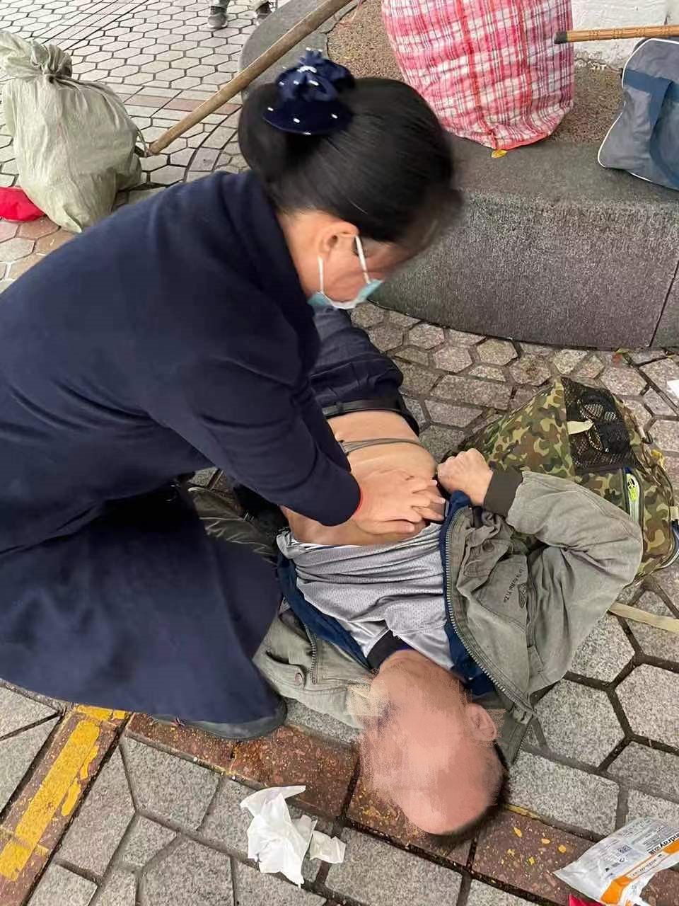 ▲廈門輪渡鋼琴碼頭站務(wù)員張菊芳進(jìn)行心肺復(fù)蘇