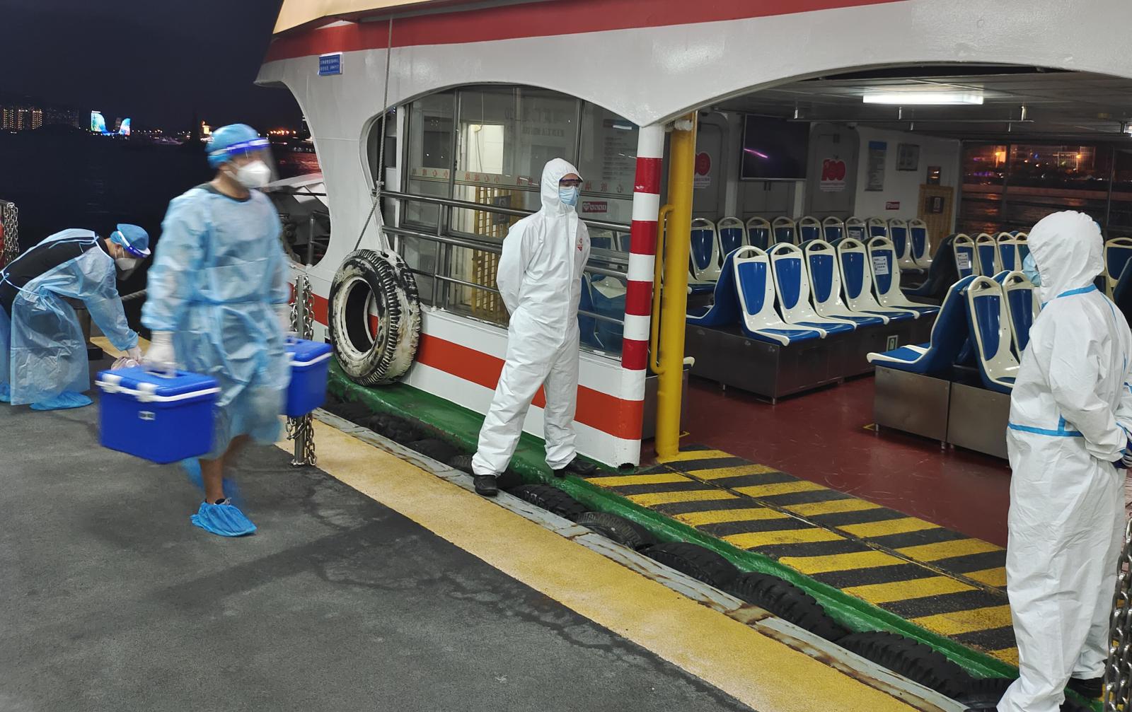在疫情防控中,廈門輪渡公司還成立黨員突擊隊(duì),調(diào)派“全國(guó)青年文明號(hào)”——“輪渡20”船作為發(fā)熱病人轉(zhuǎn)運(yùn)專船,日夜守護(hù)人民群眾健康安全。轉(zhuǎn)運(yùn)任務(wù)時(shí)常緊急且繁重,半夜出動(dòng)也是家常便飯。但每當(dāng)任務(wù)來(lái)臨,他們總是毫無(wú)怨言,盡職盡責(zé)暢通“生命轉(zhuǎn)運(yùn)線”,當(dāng)好人民群眾的“守夜人”。每每完成運(yùn)送任務(wù)后,他們還要拖著疲憊的身軀,做好碼頭船岸的消殺工作。據(jù)統(tǒng)計(jì),僅2022年期間,專船就轉(zhuǎn)運(yùn)發(fā)熱病人 236趟次、中高風(fēng)險(xiǎn)地區(qū)人員195趟次、核酸樣本589趟次。