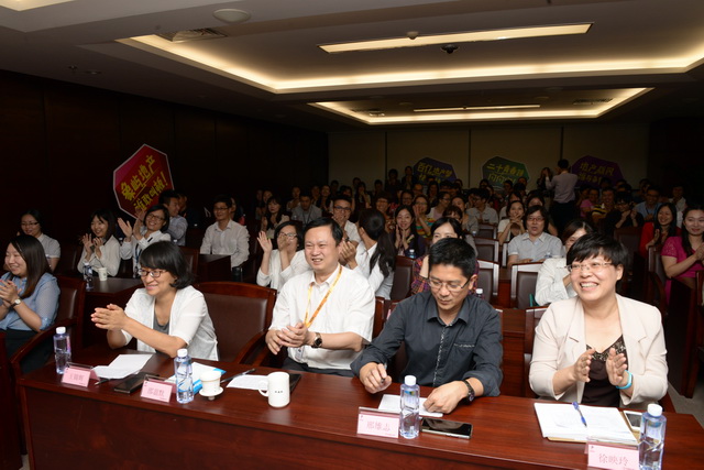 廈門衛(wèi)視總監(jiān)徐映玲、廈門廣電集團(tuán)首席主持人邢雄志、集團(tuán)黨委副書(shū)記、工會(huì)主席邵蕰默等三位專業(yè)評(píng)委,集團(tuán)各行業(yè)、單體公司的11位員工評(píng)委和到場(chǎng)所有員工不由為精彩視頻鼓掌