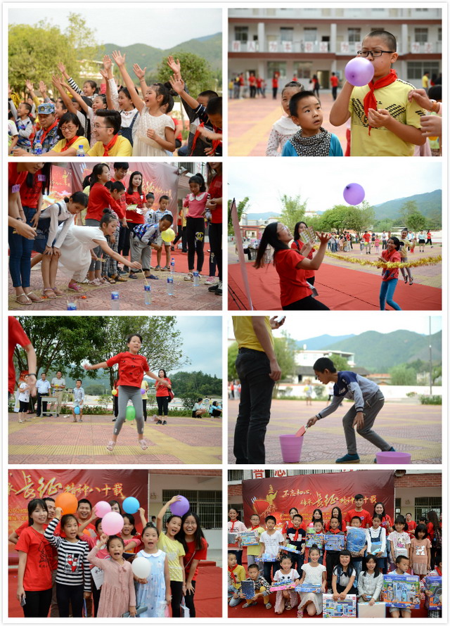 送上教學(xué)設(shè)備和辦公用品,象嶼人還用魔術(shù)、詩(shī)朗誦等節(jié)目為孩子們帶來(lái)歡樂。朝氣蓬勃的孩子們舞蹈和歌聲歡迎遠(yuǎn)方的客人。象嶼志愿者們還精心準(zhǔn)備了“集‘小象’,贏大禮”的互動(dòng)游戲,讓象嶼人和大田小學(xué)的孩子們自行組成小隊(duì),開始小小的“革命征途”?!皠倮陧憽薄扒Ю飺魯场薄氨<倚l(wèi)民”“一往無(wú)前”“不負(fù)重托”等游戲讓孩子們和志愿者們打成一片。完成任務(wù)的孩子們收獲了一份份禮物,開心得合不攏嘴,簇?fù)碇鴰椭麄兺瓿烧魍镜南髱Z人一起合影。