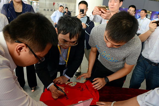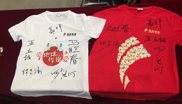 聶老等兩岸世界冠軍們,還在象嶼集團(tuán)文化衫上留下珍貴簽名。