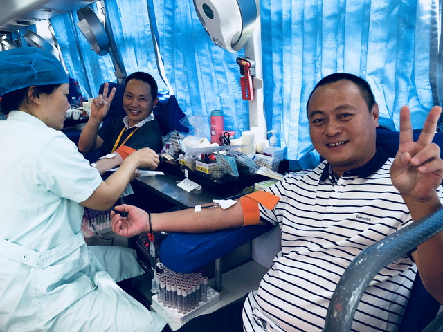 今年象嶼集團的第一位獻血者是從大嶝島起早特地趕過來的,來自象嶼新為天公司的蔡曉田,不到8:30,他就已經(jīng)獻出自己的愛心了。
