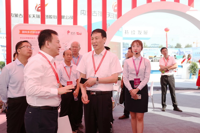 開幕式結(jié)束后,陜西省人大常委會(huì)副主任、榆林市委書記、市人大常委會(huì)主任、黨組書記戴征社,榆林市委副書記、榆林市人民政府市長(zhǎng)李春臨等市領(lǐng)導(dǎo)率重要參會(huì)嘉賓們蒞臨象嶼集團(tuán)展位,象嶼集團(tuán)黨委副書記、總裁陳方,象嶼股份黨委委員、副總經(jīng)理程益亮,象嶼股份副總經(jīng)理張軍田,象道物流董事長(zhǎng)溫兆仁等熱情接待。領(lǐng)導(dǎo)們駐足象嶼展位,饒有興趣地聽解說員講解象嶼國(guó)際多式聯(lián)運(yùn)服務(wù)平臺(tái)及能源化工產(chǎn)業(yè)鏈服務(wù)平臺(tái),象嶼的發(fā)展模式得到榆林市領(lǐng)導(dǎo)及嘉賓們的高度認(rèn)可。
