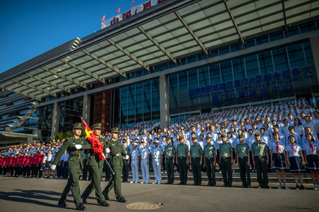 升旗手迎風振臂一揮,五星紅旗冉冉升起
