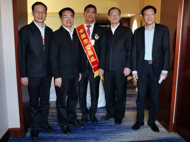 表彰大會上,象嶼集團黨委書記、董事長張水利榮膺全國勞動模范,接受黨和國家領導人的表彰。