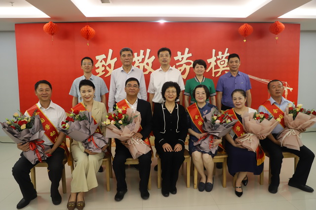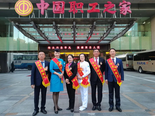 ▲出發(fā)前,市總工會為勞模舉行歡送儀式,市委常委、市總工會主席倪超等領導與即將進京受獎的全國勞模合影留念