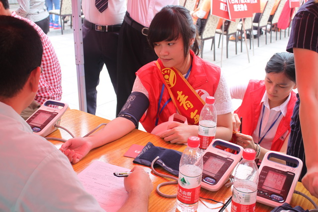 活動(dòng)還未開始,獻(xiàn)血服務(wù)柜臺(tái)前就已經(jīng)聚集了滿滿的人潮,志愿者耐心地排著隊(duì),等待獻(xiàn)血前的體格檢查。廈門市民黃小姐是第一次獻(xiàn)血,得知有這樣的活動(dòng),她一大早就從市區(qū)驅(qū)車到大嶝小鎮(zhèn)參與活動(dòng),“獻(xiàn)血本來是另一種向社會(huì)表達(dá)愛心的方式,和臺(tái)灣同胞一起獻(xiàn)血,意義更特別了?!钡却艘欢螘r(shí)間以后,黃小姐在醫(yī)生的允許下登上了獻(xiàn)血車,看著自己的血液通過導(dǎo)管緩緩流入血袋時(shí),黃小姐臉上笑容特別燦爛。