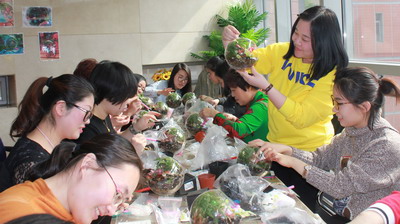 用“秀外慧中”來形容象嶼女員工們是再合適不過了。節(jié)日里,園區(qū)中心女員工走出職場,踏進(jìn)廚房,用巧手打起蓬松甜蜜的奶油,烤出松軟香噴的蛋糕,裱出精致可愛的彩虹造型;股份本部的女員工們置身于古香古色的印刷工坊,系上圍裙,親手調(diào)制染料,印制出獨(dú)具個(gè)性的布包,以精細(xì)的手工和淡淡的油墨香氣致敬中華傳統(tǒng)文化;天津象嶼女員工則化身巧手園丁,鋪土、載重、置石、點(diǎn)綴,創(chuàng)造出一個(gè)個(gè)妙趣橫生、綠意盎然的的微景觀;大連象嶼女員工們手執(zhí)畫筆,繪出對美的詮釋,展露出鏗鏘玫瑰的另一種魅力。
