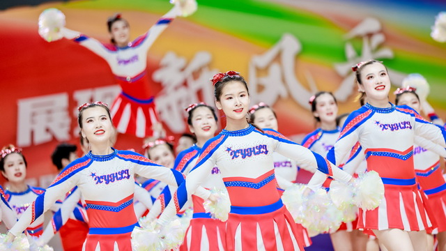 奮進新時代,舞出新風采,來自全國各地、各行業(yè)的10支啦啦操隊伍,跳出了青春象嶼的勃勃生機、團結一心的強大力量,和永爭第一的熾熱情懷。