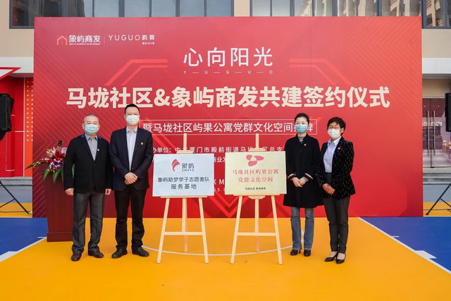 近日,廈門市湖里區(qū)殿前街道馬垅社區(qū)黨總支和象嶼商業(yè)發(fā)展聯(lián)合黨支部在廈門嶼果公寓簽約共建。殿前街道黨工委書(shū)記顏莉莉,象嶼集團(tuán)黨委副書(shū)記邵蕰默,殿前街道黨工委委員、二級(jí)調(diào)研員邱忠民出席儀式,并為馬垅社區(qū)嶼果公寓黨群文化空間揭牌。