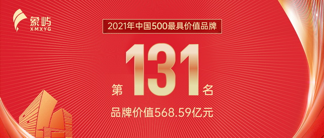 6月22日,由世界品牌實驗室主辦的第十八屆“世界品牌大會”在北京舉行,發(fā)布2021年度《中國500最具價值品牌》分析報告,象嶼以568.59億元的品牌價值位列榜單第131位,較上一年度前進8位。這是象嶼品牌連續(xù)3年蟬聯(lián)榜單,品牌價值較2020年提升80.73億元。
