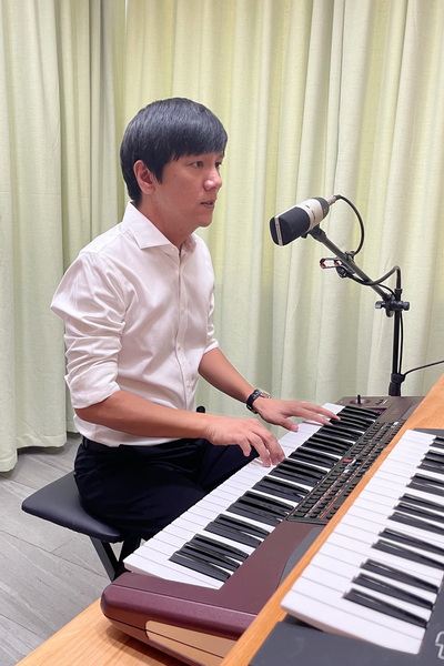 作曲者新圩學(xué)校音樂教師朱冰林在這次疫情中情況特殊,他就居住在同安封控區(qū)內(nèi)。因此疫情發(fā)生后,他和小區(qū)的其他居民一樣居家不出,認(rèn)真配合做好每一輪核酸檢測。居家期間,他寫出了《廈門就是我們》的旋律。由于無法外出到專業(yè)場所錄音制作,他就自彈自唱。